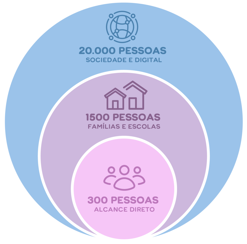 • Famílias: Ao atender uma criança, atendemos todo o seu núcleo familiar. Cerca de 400 familiares beneficiam-se do suporte, acolhimento e das tecnologias desenvolvidas, ganhando novas perspectivas sobre o desenvolvimento de seus filhos.